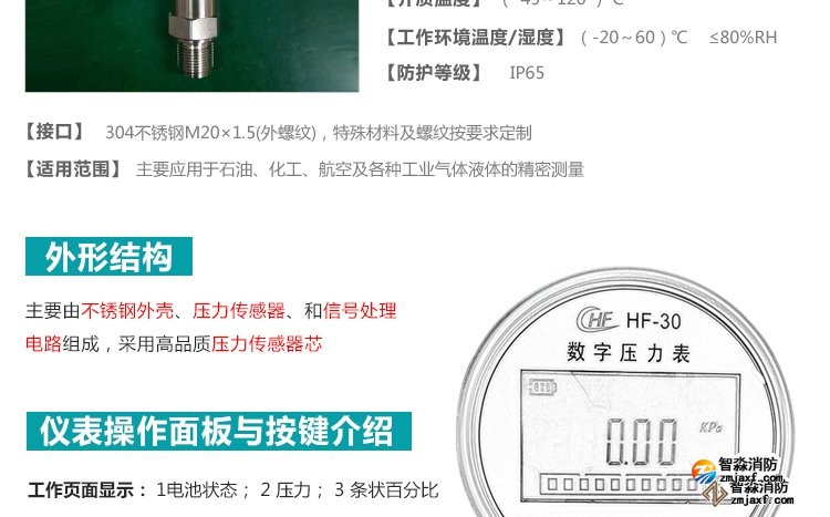 數(shù)字壓力表量程0-20MPa,精度0.4級測試消火栓用30. 細(xì)水霧末端試水裝置壓力表量程:0MPa~0.6MPa;精度:0.4級安裝在系統(tǒng)管網(wǎng)或分區(qū)管網(wǎng)的末端,檢驗系統(tǒng)啟動。