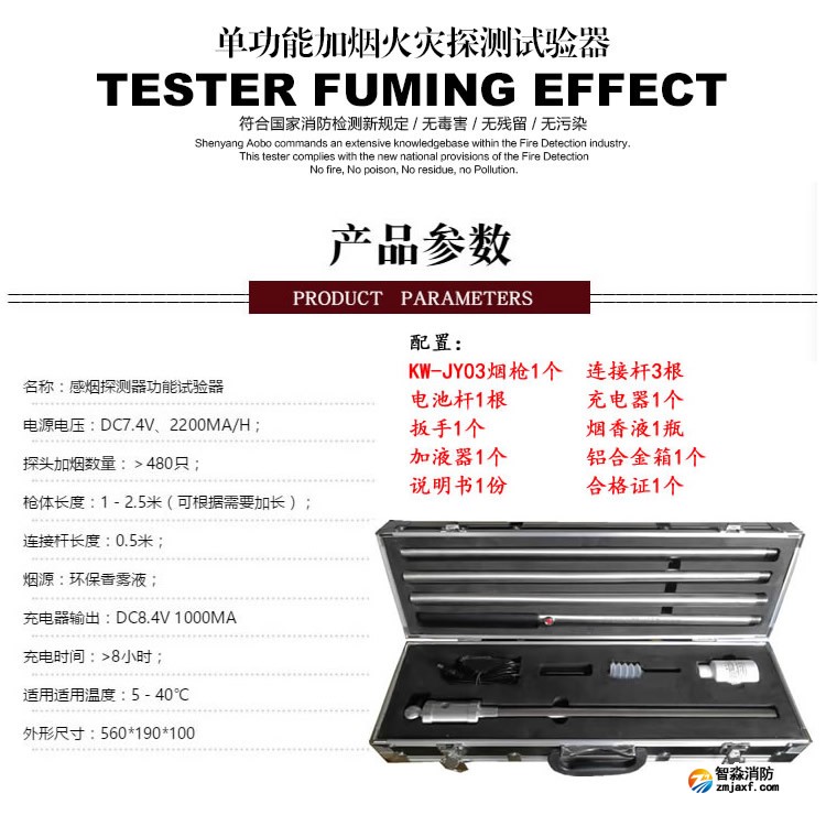 ZM-Y感煙探測器功能試驗(yàn)器是4+2全功能火災(zāi)探測器試驗(yàn)器的子產(chǎn)品,利用物理學(xué)和化學(xué)原理控制和轉(zhuǎn)換技術(shù),采用環(huán)保型霧香液通過電子能量轉(zhuǎn)換,將液體釋放哦顆粒煙霧,取代并淘汰了傳統(tǒng)的棒香發(fā)煙方式,發(fā)出的煙霧無明火、無煙灰、無煙油,對(duì)探頭無二次污染。以其結(jié)構(gòu)緊湊,外形精美,攜帶方便,組裝簡單,操作靈活,槍體輕便,性價(jià)比高等受到廣大用戶的青睞。全結(jié)構(gòu)為不銹鋼設(shè)計(jì),鋁合金箱包裝,可對(duì)感煙類(各種型號(hào)的離子、光電及復(fù)合類煙感探測器)火災(zāi)探測器進(jìn)行維護(hù)、檢測、調(diào)試、驗(yàn)收、靈敏度試驗(yàn)。是西安消防檢測、消防工程及使用火災(zāi)報(bào)警系統(tǒng)的單位輔助工具。
